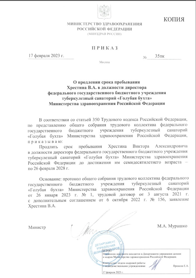 Правовые документы ФГБУ ТС «Голубая бухта» Минздрава России